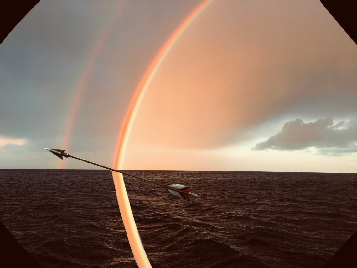 -The fourth bay was without any rhyming ‘oons’ but it’s sky was painted with a brilliant electric rainbow. An intense two dimensional fabrication, a charlatan, on a dark ocean sky.