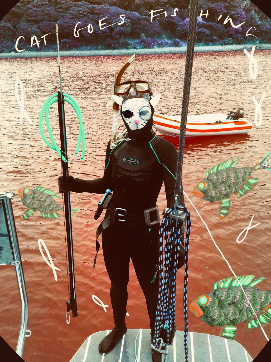 -The seventh bay, under the sea, there was a glinting hook without any bait on hanging motionless in the deep azure. A school of laughing full bellied snapper, in absolute hysterics, falling over themselves in humorous scaly delirium, circled the hook. The Owl and Cat were practicing some more sustainable fishing (where by you feed the fish rather then eat them).