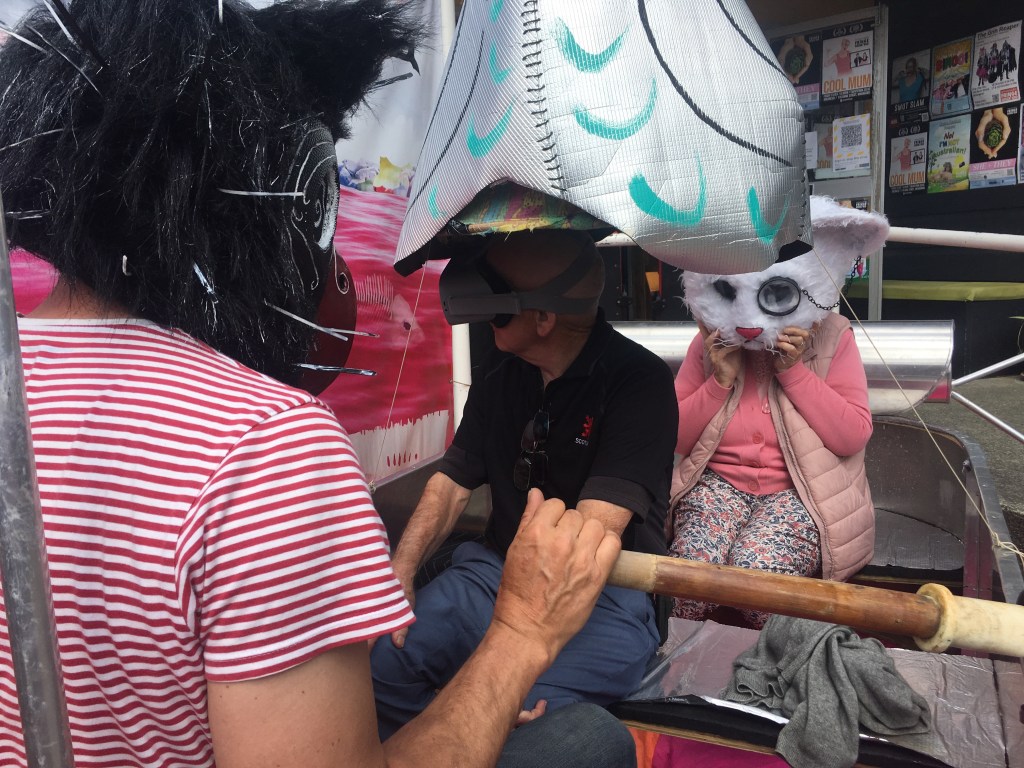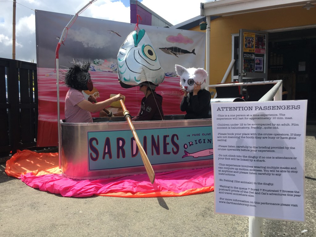 A Fantastical Journey by Boat is an award winning immersive performance and multi media experience that takes you across a magical ocean. Join the Owl and the Cat in their tin can boat and enter a transformed seascape where birds may fly backwards and icebergs could be pink. ‘A Fantastical Journey by Boat’ is a two person at a time performance which explores virtual reality and eco-anxiety all with a nonsensical twist.